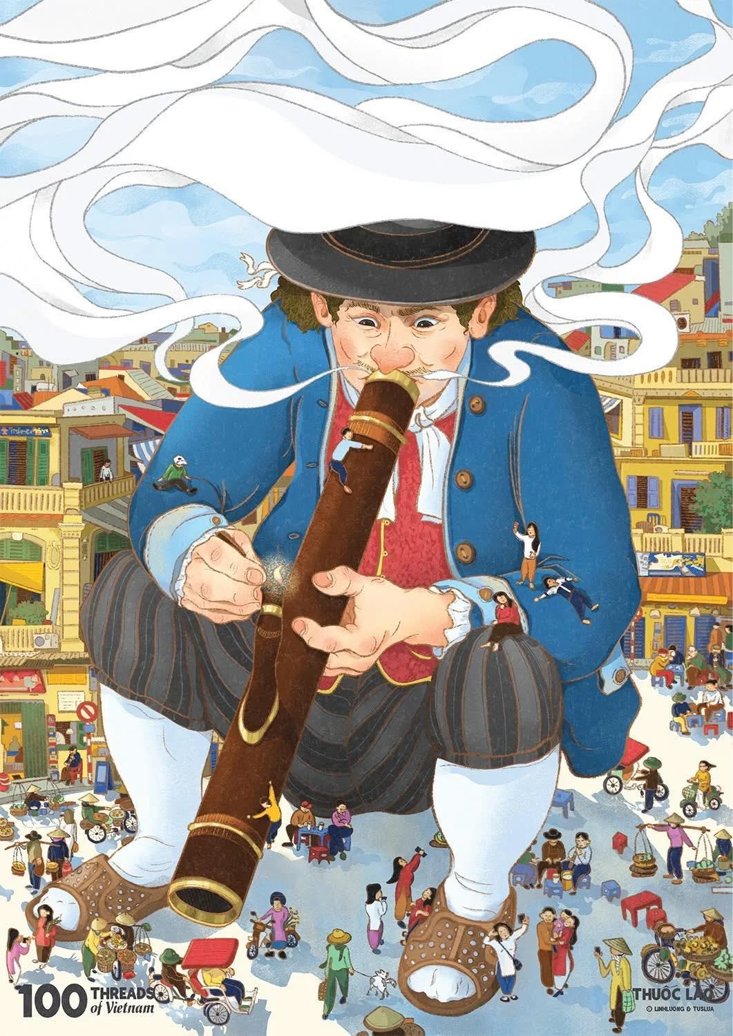 Điểm đặc biệt khiến 100 Threads of Vietnam chinh phục được cả khán giả trẻ lẫn giới chuyên môn chính là ngôn ngữ đồ họa. Thay vì đi theo lối mòn tả thực, các họa sĩ đã sử dụng thủ pháp ẩn dụ và phóng đại để làm nổi bật "linh hồn" của đối tượng làm những bức tranh minh họa trở thành một kho tàng dữ liệu thị giác về văn hóa Việt, nơi người xem có thể nhìn thấy chính mình và cội nguồn dân tộc trong một hình hài lộng lẫy hơn.