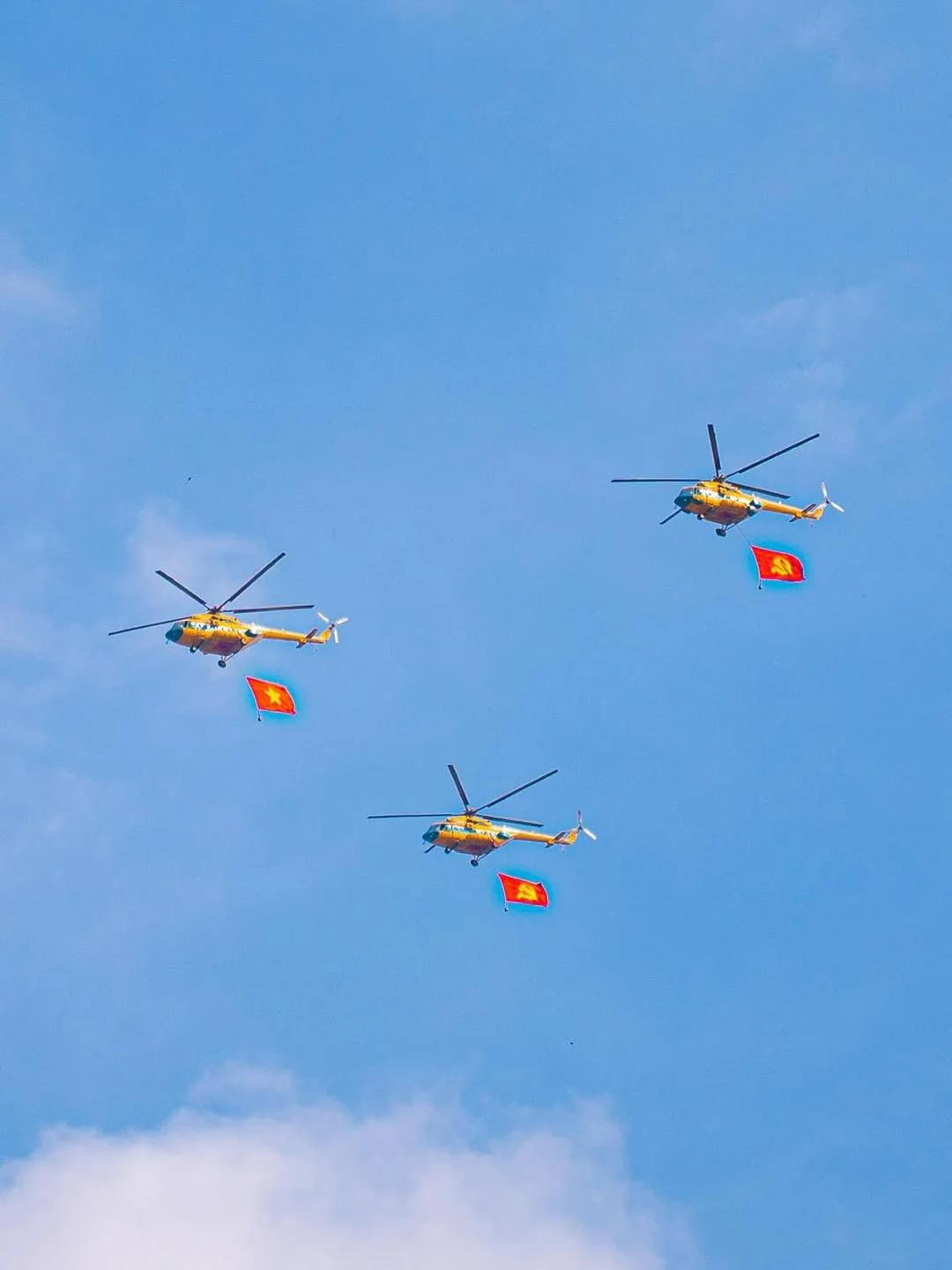 Trong khoảnh khắc những cánh chim thép xé gió, để lại vệt sáng rực rỡ giữa bầu trời xanh thẳm, ta cảm nhận rõ ràng hơn bao giờ hết sức mạnh, lòng quả cảm và niềm kiêu hãnh của dân tộc. Những chiếc tiêm kích, trực thăng mang trên mình lá cờ đỏ sao vàng không chỉ là hình ảnh của kỹ thuật và sức mạnh, mà còn là biểu tượng thiêng liêng về ý chí bảo vệ non sông.