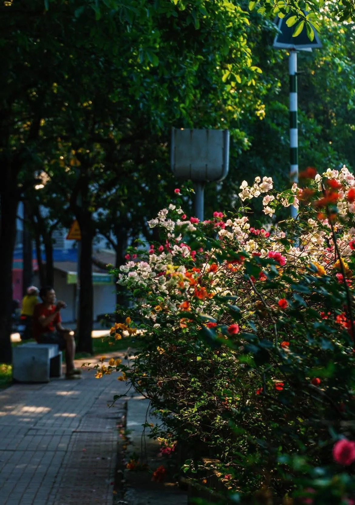 Ánh sáng buổi sáng được xử lý mềm và có chiều sâu, giúp các lớp không gian tách bạch rõ ràng: tiền cảnh rực rỡ, trung cảnh sinh hoạt đô thị, hậu cảnh mờ nhẹ tạo cảm giác không khí. Đây là cách xây dựng layer hình ảnh rất hiệu quả trong nhiếp ảnh đô thị.